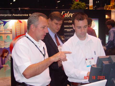Kevin Welch (far right) of Bi-State Point of Sale Solutions explains the functionality if the traditional Restaurant Manager POS system.